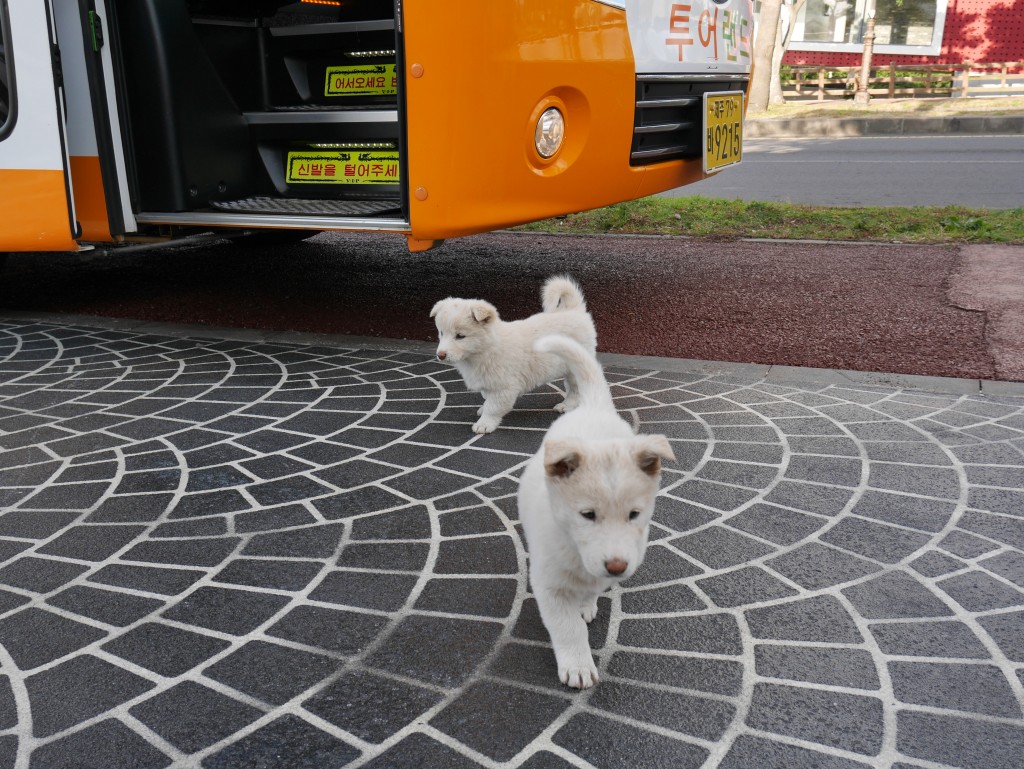 JEJU最終日。朝、ホテルの前に子犬。