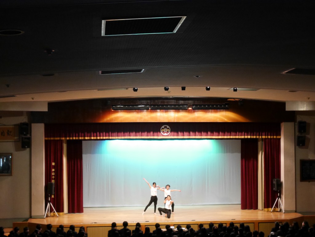 予餞会でした。6つのチーム、それぞれのよさを発揮して踊ることが出来たのではないかと思います。2階席から職員劇の猟師のカッコをしたまま観ていました。何故だか講堂の生徒たち、その客席は妙に静か。でも盛り上がっていないわけではなく、みんながダンスを真剣に観ている感じでした。ダンス鑑賞のような時間帯になっていたように思う。