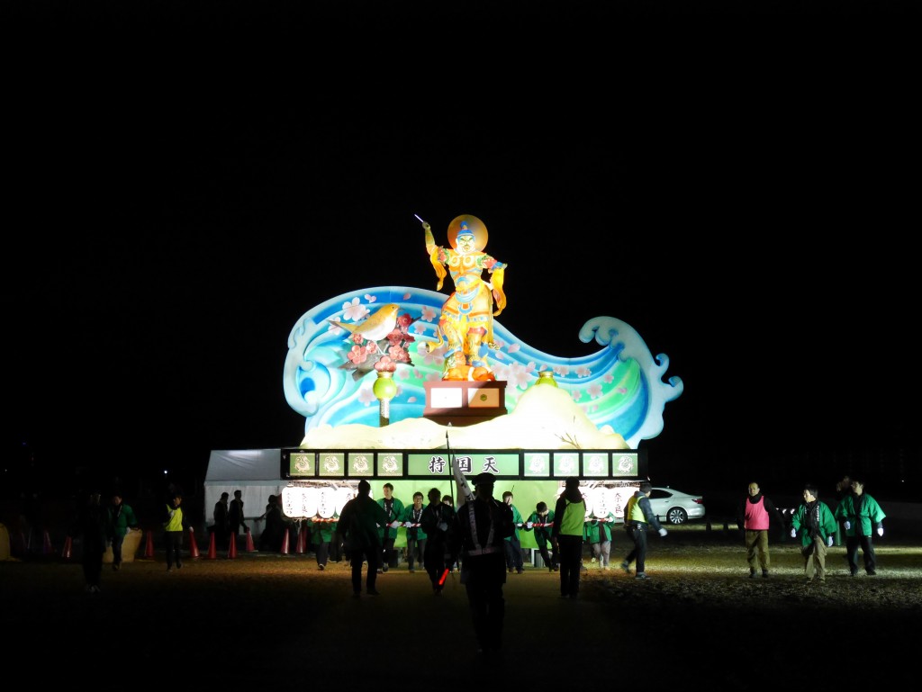 正直 LED照明で内部から光を放つ四天王はなかなか迫力がある。そして和太鼓の演奏に合わせてかなりの距離を練り歩く。