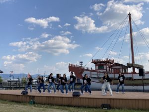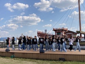 今日、遣唐使船の前で踊って参りました。
