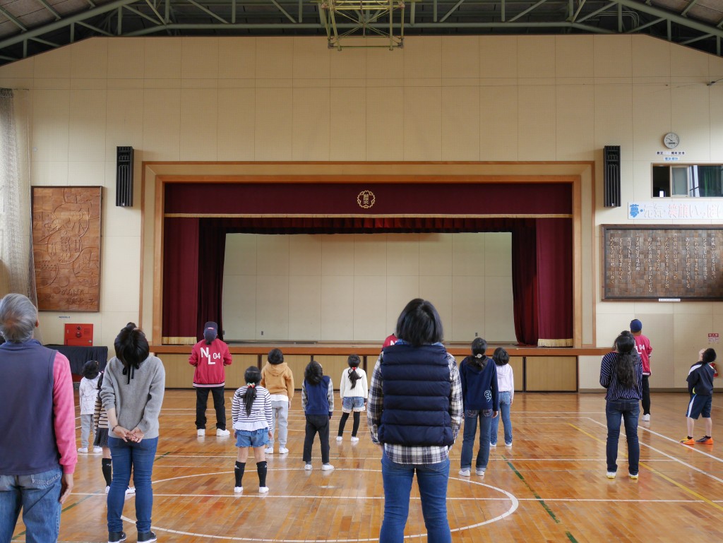 体育館に集まったのは小学生12人。一緒にダンスを踊りました。そしてそれを上回る数の保護者やそして先生など、大人の人たち。